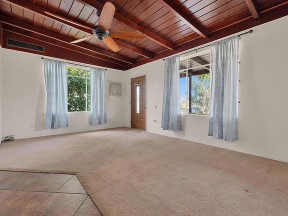 This home is within walking distance to town, boasts beautiful wood ceilings and a fireplace that enhances the property's character, offering a cozy and inviting atmosphere. The primary bedroom features an underground storage area, plenty of natural light and a unique layout. This is a great starter home and a fantastic opportunity for someone willing to invest a little TLC. No HOA! Borrego Springs is California's first designated International Dark Sky Community and is in the northeastern region of San Diego County surrounded by the Anza-Borrego Desert State Park.