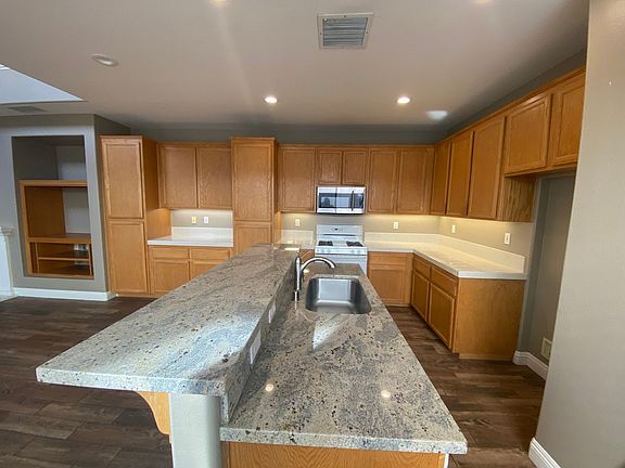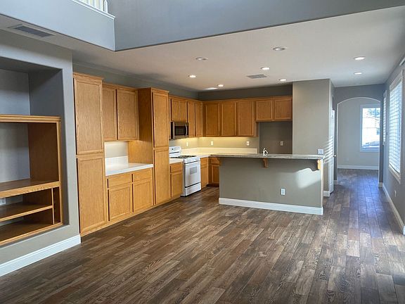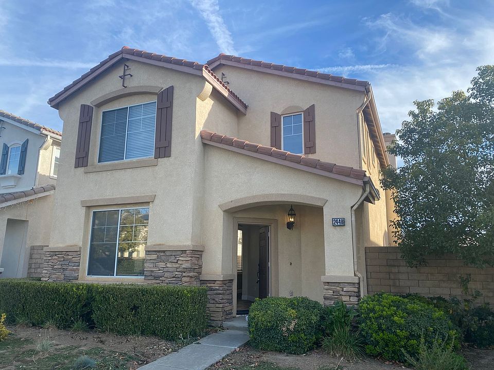 This beautiful & bright 3BR + loft home, nestled in the Milestone track, is move-in ready! As you step into the living room, you'll appreciate the hardsurface flooring, with lots of big windows, adorned with shades. A cozy family room comes complete with a custom built-in entertainment center & fireplace. The open floor plan leads you to the kitchen with gorgeous oak cabinets and breakfast bar. The dining area opens to the rear patio, complete with side patio. Upstairs, the large master suite boasts an extra large closet, tub & separate shower. This home comes with many upgrades, including recessed lighting, double sinks, & upstairs laundry room. Close to great schools, parks, and freeways. Well behaved pet will be considered with increased deposit. No smoking please.