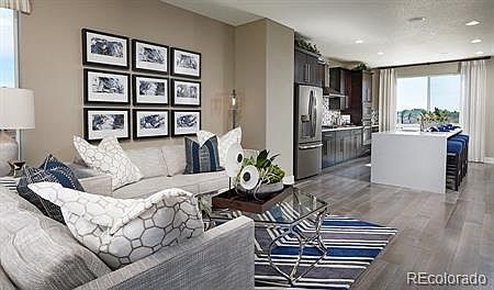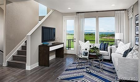 Personalization options are still available in this spacious SoHo! With a gourmet kitchen, an extended center island, large walk-in pantry, and an adjacent tech center, this plan has it all! Upstairs is the spacious master suite with a luxurious master bath that features a large walk-in shower, dual sinks, and a walk-in closet. The secondary bedroom boasts its own private bath. Enjoy outdoor entertaining off the living room balcony as well as the 400 square foot rooftop patio! Residents enjoy access to two community pools, multiple parks, great open space and trails as well as The Outlets at Castle Rock, numerous restaurants, entertainment, dining and I-25. (Images are of similar model home. Home does not come furnished.)