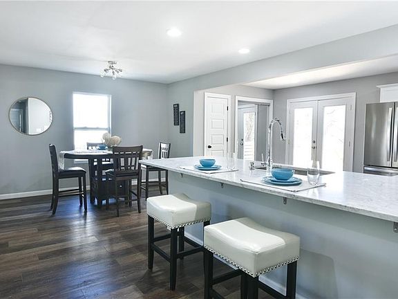 - Kitchen Features: Cabinets White, Solid Surface Counters