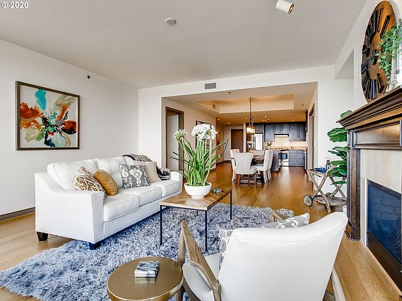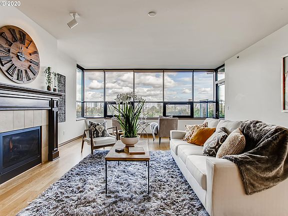 Nestled in Nob Hill,with stunning panoramic views of the city & the cascade mtns! Coveted Cambridge Condominiums.Spacious foyer. Great room concept.Spacious kitchen w/eat-in granite island & gas range. Dining rm w/private patio & grill space.Living room w/gas fireplc,access to front patio,& views.Private master suite w/walk-in closet has patio access. Den could be 3rd bdrm, gym, or WFH space.TWO deeded parking spots + storage.The ultimate in luxury & convenience. Walkable to NW 23rd & more.