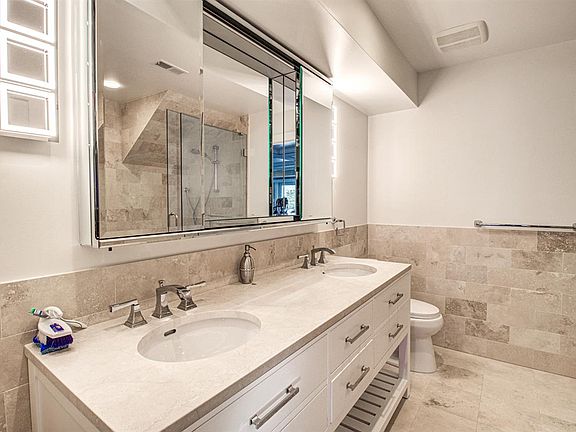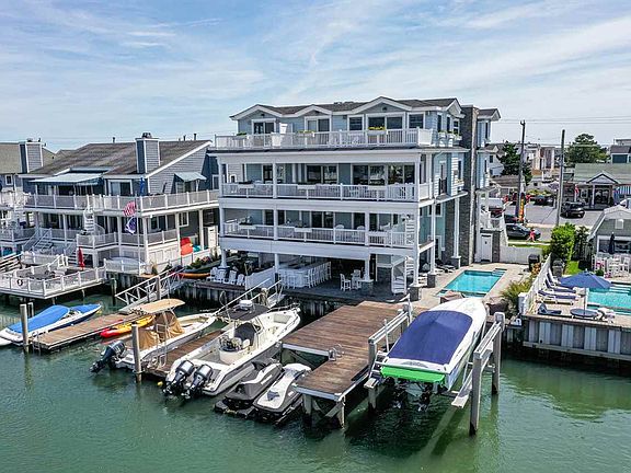 THE SINGLE BEST TOWNHOME ON 7 MILE ISLAND. A four stop elevator, 8 bedrooms (could be 9) and 6.5 bathrooms, 3,800+ square feet plus a 4 car, grade level garage, three boat slips, a jet ski float and a fixed pier, a pool and a hot tub that would rival any single family property's pool in size and scale, a staggering amount of covered and uncovered deck space, off street parking for an army of cars and high end finishes throughout. This extraordinary home functions as a high end single family home. Constructed on an 80 foot lot, 52' of which are allocated to this expansive townhome. A massive amount of steel helps to create wide open spaces, enhancing the northern, western and southern bay views. The first floor features three bedrooms, two full bathrooms, and a laundry. The bayside first floor bedroom spans the width of the townhome, offers a beautiful beadboard ceiling and multiple slider access to a bayside deck, and functions as one of a couple master suites (this space could easily be transformed into an enormous first floor family room). The second living floor is entirely dedicated to the entertaining space. On the bayside of the stair, a luxurious living area is centered on a linear fireplace with a stacked-stone surround. The custom kitchen features side by side subzero refrigerators, four freezer drawers, a duel zone wine refrigerator, and a wolf range. A wall of sliders walks out to the second floor deck, finished with Ipe deck boards, surround sound, multiple seating areas and beautiful bay and sunset vistas. On the street side of the stair, a second family exists, currently outfit with a pool table, an air hockey table, a pinball machine and a full bathroom outfit with marble tile. The third floor offers three street side bedrooms that share a hall bath, and two bayside bedrooms with en-suite bathrooms. The southwest corner of the third floor is dedicated to the master suite and offers some of the best views in the house. The master bathroom is floor to ceiling marble. At grade level, a massive garage offers garage door access out of the front, side and rear. A giant bayside bar overlooks the water. Multiple seating areas surround a giant side yard, sun soaked pool. An expansive fixed pier over the water completes one of the better grade level living areas in all of Avalon. Other special features include spray foam insulation, a whole house water filtration system, a great surround sound system, irrigated flower boxes, ipe decking, Porcelanosa hardwood floors, and an expansive hardscape and landscape package. You will spend a lifetime looking for another townhome with this width, this level of finish, and an elevator. Don't miss your opportunity to see this very special home.