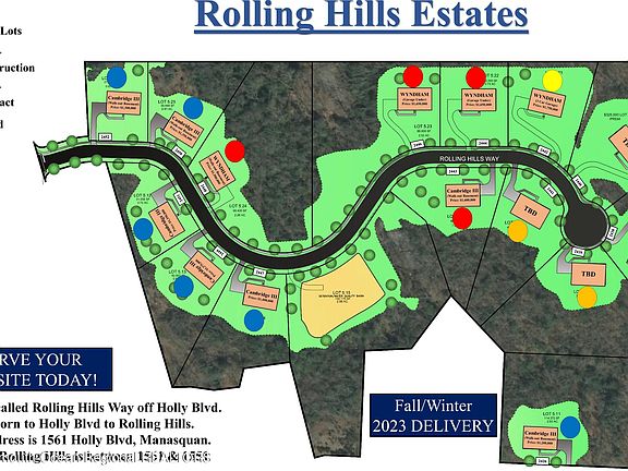 Brand New 15 Home Community in Wall Twp off Holly Blvd in the Manasquan Park Section. This Lot (2.26 Acres) features the Wyndham Model and is on track to be complete by Jan 2023! Features include 5 Beds, 3.5 Baths, Walk-out Basement, 1st Floor Office, 2 Car Garage, 3700 SF, Interior: H/W Flooring throughout, 10 Ft Ceilings on 1st Floor, Gorgeous Custom Trim/Paint Throughout, Gas Fireplace in Living Room, 300 AMP Electric, & Large Open Floorplan. KIT boasts 42'' Custom Cabinets, Quartz Counters, Tile Backsplash, GE Cafe Stainless Appliances, Center Island & Butler Pantry. Master Includes: Enormous Walk-in Closet, & Att Full Bath w/Dual Sink Vanity, Shower Stall & Soaking Tub. Also Anderson 200 Series Windows, & some Stone/Cedar Impressions Accents. Close to Shopping, Bike Trails, & Beaches. ***GPS Address is 1561 Holly Blvd, Manasquan. New Street, Rolling Hills is between 1561 and 1551 Holly Blvd***