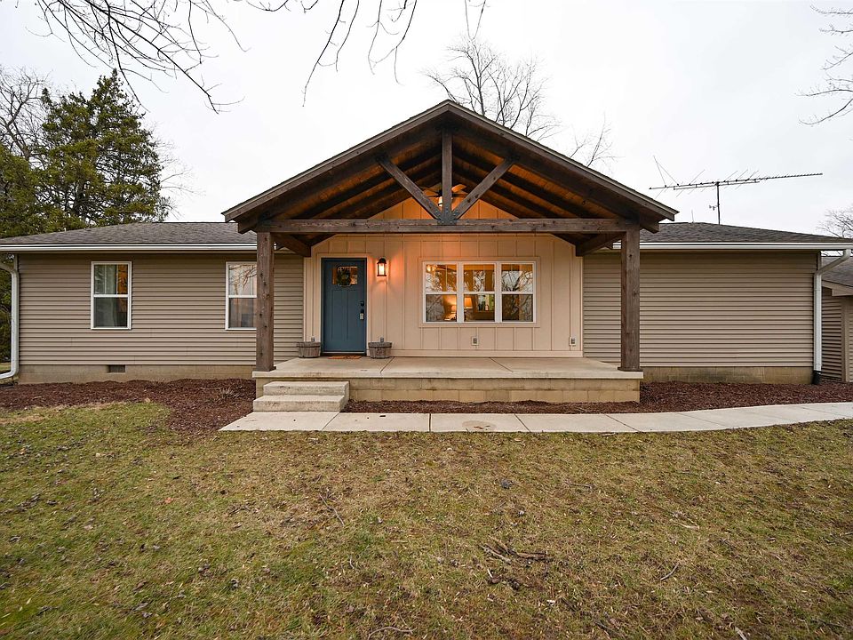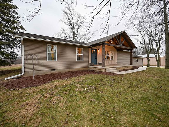 Country living at its finest. 21.7 acres with roughly 1.3 acres tillable. 3 to 4 bedroom, 2 baths. Many updates including new craftsman style doors and trim. Craftsman style front porch with solid cedar beams. Property backs up to the Wildcat Creek and is partially wooded. 60 x 105 pole barn, 40 x 36 barn. Whole house generator.