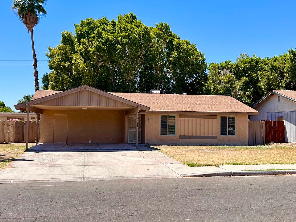 Recently updated Hacienda Estates home fresh ceramic tile throughout. Large open floor plan with living room, dining room and family room. 3 bedrooms featuring ceilings fans, blinds and tile flooring. Master suite has a large closet and newly updated bathroom. Galley kitchen features fresh granite countertops and updated stainless appliances. 2 car carport with extra storage area. Fully fenced backyard with