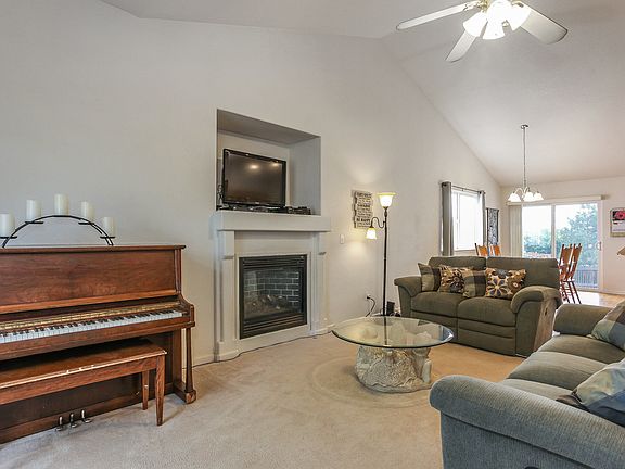 Lovely, open floor-plan ranch features upgraded oak hardwood floors in the kitchen and dining room, vaulted ceilings, whole-house fan, central air, and ceiling fans, new sinks and faucets on the main level, newer A/C, newer water heater and newer furnace. The kitchen includes a flat surface convection range/stove, roller drawers and 48 inch cabinets. The master bedroom includes a vaulted ceiling, 5 piece master bath and walk-in closets. The large basement is professionally finished. Home backs to a maintained greenbelt with sidewalk. A new gate allows convenient access to the backyard. Front and back windows have 3M tinted film for better energy efficiency. This home is move-in ready!