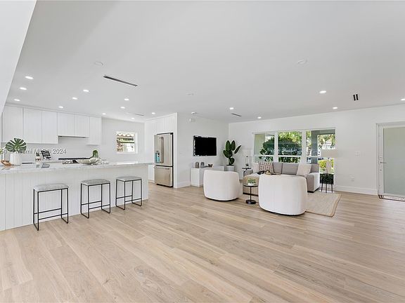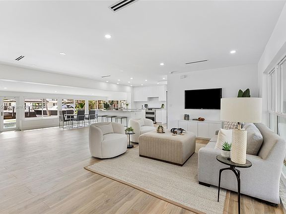 Meticulously renovated luxurious waterfront residence in the prestigious Pompano Isles community. This prime location with no fixed bridges is the epitome of South Florida luxury living. Redesigned by interior designer Susanne Wong. 3 bedrooms & 3 bathrooms on a seamlessly floor plan with Acero Sabia porcelain tiles & marble flooring. Gourmet kitchen with custom cabinetry & top-of-the-line stainless steel appliances. Impact windows & doors, new plumbing & electrical. The primary suite offers panoramic waterway & pool views, showcasing an on-suite oversized dual shower & sink. Indulge in 75' of waterfront on the newly installed wood composite private dock with lift. Resurfaced & tiled pool, new tiki & lush landscaping. Conveniently located near fine dining, attractions & premier shopping.