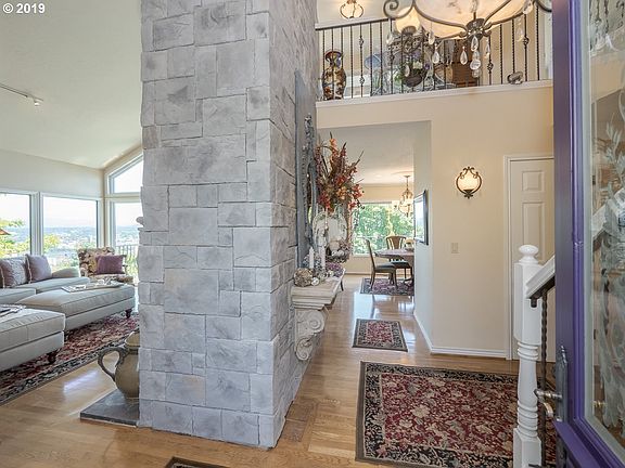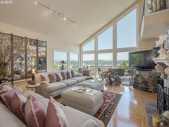 City, mountain and river views from just about every room! Completely remodeled beautiful home on almost 1/4 acre with sought after 4 car garage! Open floor plan perfect for entertaining. Lots of decking on every level to enjoy the view. Not on stilts. Walk to downtown! Fabulous landscaping,greenhouse, water feature. 2 entrances, possible home office or guest quarters. [Home Energy Score = 1. HES Report at https://rpt.greenbuildingregistry.com/hes/OR10124982]