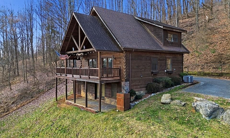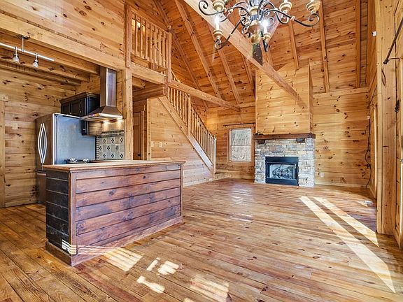 This charming home sits just outside the city limits of historic Abingdon, Virginia, on two separately deeded lots. The spacious layout features high ceilings and warm details throughout. Step inside to a great room with soaring ceilings and wood floors, anchored by a large chandelier over the dining area. The kitchen boasts stainless steel appliances, dark wood cabinets, and all appliances convey with the home. Solid wood doors and a gas log fireplace add to the charm. The main level offers a primary suite with a full bath, a powder room, and laundry. Upstairs, you'll find two additional bedrooms with a shared bath. Double doors open to a wraparound porch with views of the countryside and abundant wildlife. The full unfinished basement, with high ceilings, offers potential for more living space and houses a hot tub. The fenced yard features a remote-control gate. A second, separately deeded parcel conveys with the sale and includes an existing mobile structure being conveyed as-is. Conveniently located just minutes from historic Abingdon. Schedule your private showing today!