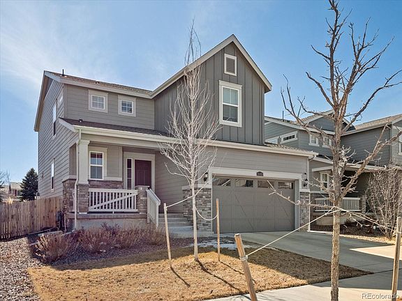 Welcome to your 2020 Lennar newer build home! **FHA Loan is Assumable** Step inside from the inviting covered front porch and enter the main level, greeted by a spacious walkway. To your left, discover a convenient closet and a half bath. The living room seamlessly flows into the kitchen, creating an ideal space for cooking, entertaining, and relaxing, with easy access to the covered back patio. The kitchen boasts a sizable island with a breakfast bar for four, ample storage, and a gas range. Adjacent to the kitchen is a practical pocket office, complete with a built-in desk, storage, and plenty of natural light. Outside, enjoy the exceptional feature of a large covered back patio with overhead lighting, overlooking the xeriscape backyard, perfect for children and pets to play. Before heading upstairs, don't forget to explore the mudroom with its built-in bench, offering convenient access to the oversized two-car garage, which provides an additional four feet of width. Venture downstairs to the expansive unfinished basement, awaiting your personal touch. Upstairs, all four bedrooms are conveniently located on the same level, along with two full bathrooms and a laundry room. The primary suite boasts abundant natural light, a spacious ensuite bathroom featuring a large shower, double vanity, ample counter and storage space, a separate toilet room, and a generously sized walk-in closet. The remaining three bedrooms share a well-appointed from the secondary bathroom with a double vanity sink. This home is part of a solar community, designed to keep electric bills down. Enjoy the convenience of being moments away from the community park, walking trails, Murphy Creek Golf Course, a convenience store/gas station, E-470, DIA, and approximately 15 minutes from Southlands Mall. Home appraised for 615K on 6/24/22. Back on market due to buyer financing fail, at no fault of the seller. Kristen Anderson, Realtor & Lender 763.234.4615 or Kristen@homewithimpact.com NMLS#2534720