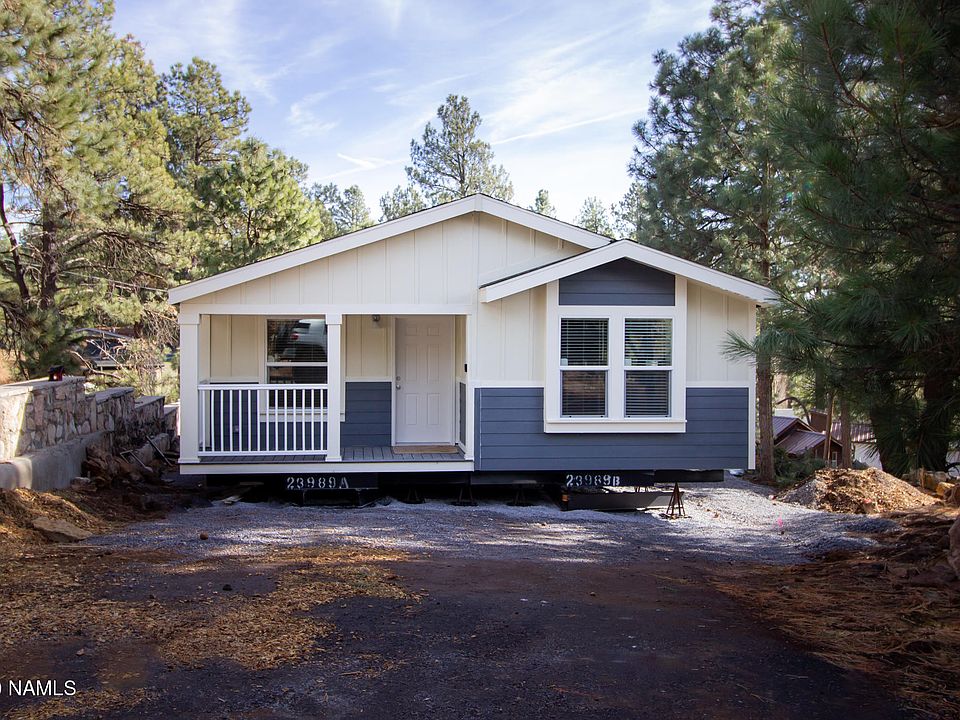 Home is set and ready for walk throughs! Come take a look! Brand new home in the heart of Northern Arizona's ponderosa forest! Several very large ponderosa pine trees in yard. Large open concept floor plan, with island in kitchen. Covered front porch, large yard and on quite culd-e-sac with basically no traffic. 2x6 construction with energy saver package will save on energy bills year round. Upgraded flooring throughout. Parking pad to be graded out soon. Concrete block skirt to be installed shortly, as well as front steps, and back entry landing and steps.
