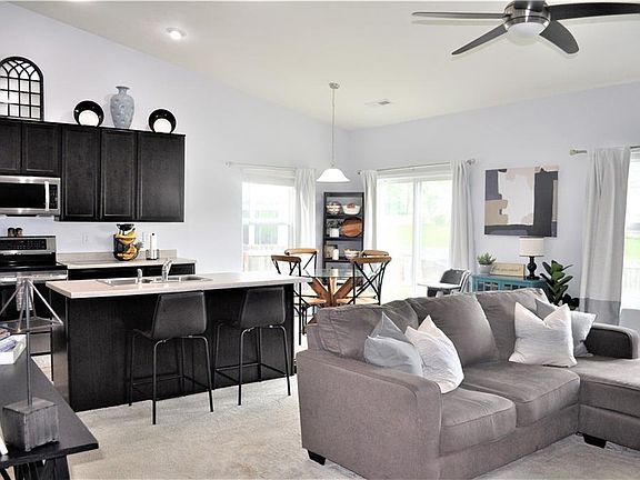 Why would you want to wait for a new construction when you can have this move in ready 1,300 sq ft, 3 bedroom 2 bath ranch home that has been meticulously maintained and is ready for a new owner! House has many upgraded features like: kitchen cabinets, stainless steel appliances, bathroom vanities, oversized 2 car garage with a 6 foot bump out, and pantry. Extra large fenced in backyard overlooks the water with a fire pit. Access the community pool, Fitness center, playground. Come see this home today!