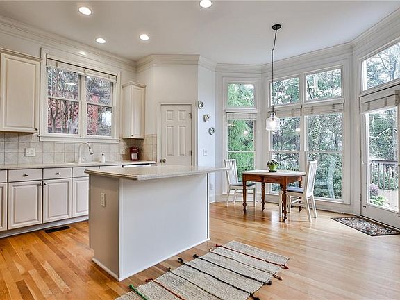 - Kitchen Features: Breakfast Bar, Eat-in Kitchen, Pantry, View to Family Room, Kitchen Island, Solid Surface Counters, Cabinets White