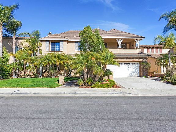 TROPICAL LANDSCAPE EMBRACES THIS AMAZING "HIGHPOINT ESTATES" HOME NESTLED (CUL DE SAC LOCATION) IN THE HIGHLY DESIREABLE COMMUNITY OF WONDERFUL SERRANO HEIGHTS. CONVENIENCE IS KEY IN THIS COMFORTABLE AND VERSATILE OPEN FLOOR PLAN WITH INTERIOR RECENTLY PAINTED AND NEW CARPET. FEATURES 4 BEDROOMS PLUS BONUS ROOM & 3.5 BATHROOMS. BEAUTIFUL INVITING ENTRY WITH SPIRAL STAIRCASE, HIGH CEILINGS, AND TRAVERTINE FLOORING LEADS YOU TO THE FORMAL DINING ROOM WITH FRENCH DOORS. A SPACIOUS FAMILY ROOM WITH DECORATIVE FIREPLACE. A TRUE GOURMET KITCEHN WITH CENTER ISLAND, GRANITE COUNTERS & BACKSPLASH, STAINLESS STEEL APPLIANCES, WALK IN PANTRY, LARGE BREKFAST NOOK AND PLENTY OF CABINETRY. OTHER HIGHLIGHTS INCLUDE: PLANTATION SHUTTERS, RECESSED LIGHTING, WINDOW BLINDS, CROWN MOULDING AND CEILING FANS. THE MASTER SUITE IS SPACIOUS OFFERING A BALCONY WITH INSPIRING VIEWS, GENEROUS WALK IN CLOSETS WITH BUILT IN ORGANIZER. MASTER BATH WITH SEPARATE SOAKING TUB, DUAL SINKS & SHOWER. LAUNDRY ROOM WITH SINK LOCATED ON FIRST FLOOR. THIS HOME IS PERFECT FOR ENTERTAINING WITH AN OUTDOOR BAR, BUILT IN BBQ AND WONDERFUL VIEW OF CITY LIGHTS AND SURROUNDING ROLLING HILLS. 2 CAR GARAGE. CLOSE TO GREAT HIKING TRAILS FOR YOUR ENJOYMENT, PARKS AND ANAHEIM HILLS ELEMENTARY SCHOOLS. TRULY A BEAUTIFUL HOME!