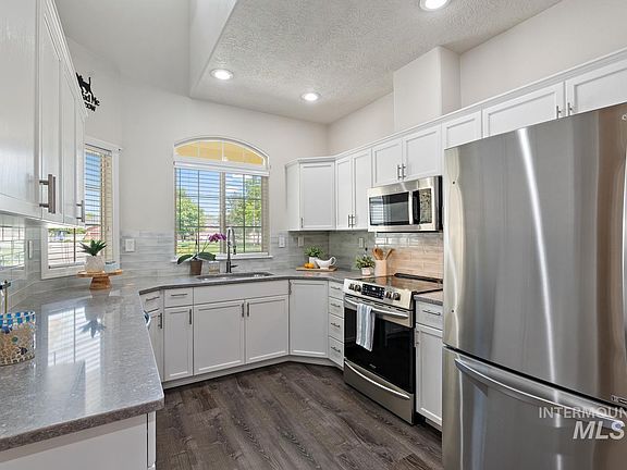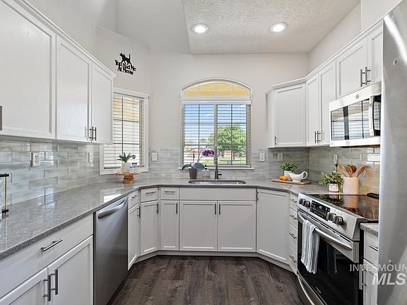 Stunning residence in the charming Tully Cove neighborhood. Adorable is the perfect description of this well cared for townhome in a quiet community that boasts its own neighborhood park. Low maintenance living with front and rear lawn care included in association fees. Features include vaulted ceilings and skylights in the kitchen which also has upgraded countertops, new appliances, and new flooring. The living area provides a comfortable retreat with a fireplace. The primary suite is a true sanctuary, featuring a window seat, large walk-in closet, and walk-in shower in a bathroom that boasts sleek countertops, modern fixtures, and a luxurious feel. Additional bedrooms and bathroom ensure comfort and style throughout and lots of storage. The backyard has a spacious patio area, perfect for outdoor gatherings and relaxation.