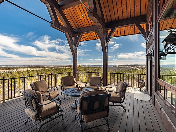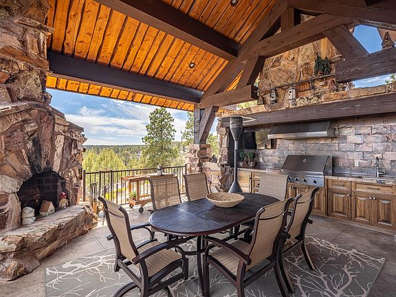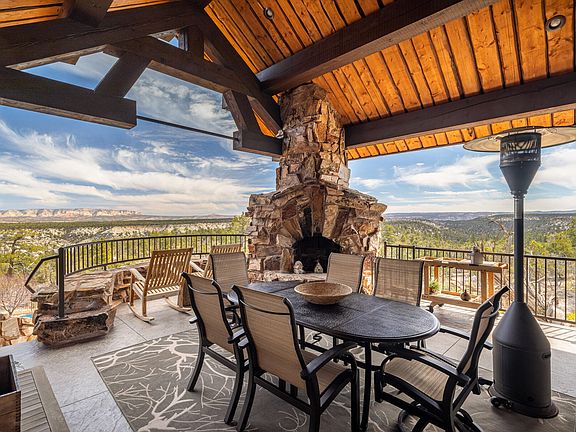 Majestic describes this impressive hideaway estate perfectly. Uniquely elevated amongst BLM and designated wilderness area, the limitless panoramic views extend to Bryce Canyon and Kaibob National Forest. This property boasts a beautiful 2-level main house with stunning beamed ceilings, huge gourmet kitchen, custom accents throughout, 2 bedrooms + office, 4.5 baths, bonus downstairs family room with stone fireplace and elegant full-service bar, spacious patios on both levels, outdoor fireplace, and infinity pool with soaring views. A stone walkway welcomes you to an adjacent guest cottage with 2 additional bedrooms w/en suite baths, kitchenette, and fireplace. Plenty of garage space, including stand-alone garage. This one will take your breath away...it is truly special.
