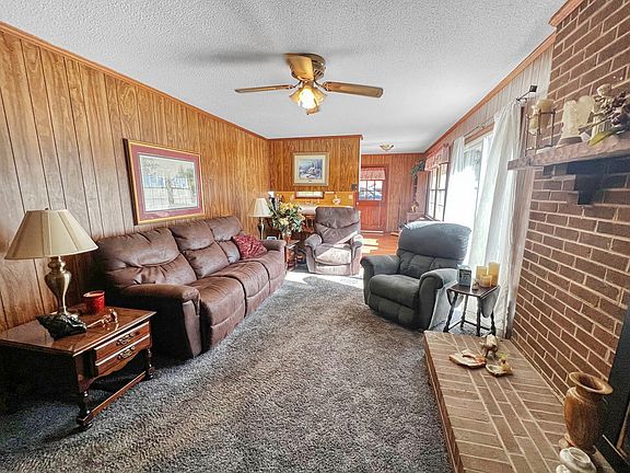 Brick home with 2 acres. 2 car carport, Living Room, Family Room with fireplace, Kitchen, Dining Room. The primary bedroom has a private bath. Full Unfinished walkout basement.