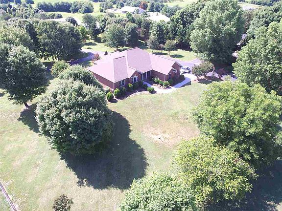Custom built, full brick rancher on a spacious and unrestricted 5 acres tract with a stall barn and metal garage/workshop. The home has a 2816 sq/ft open floor plan with hardwood floor in the living areas and tile in the wet areas. It has a central vac system, security system, walk-in closets and is adorned with beautiful custom cabinetry and mill-work throughout the main level. On the lower level there's a second fully furnished kitchen, a large open area, another garage, and a studio/office with a private entry and bathroom. Out back of this unrestricted property sits the stall barn waiting to house all your animals and farm equipment, and the metal garage/workshop with it's more than generous storage and endless possible uses. The acreage has been planted with numerous fruit trees and bushes to be immediately enjoyed, but could also be used as pasture or tilled and planted with row crops. Call today to schedule your own private viewing of this extraordinary estate!