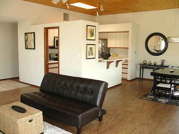 Fantastic Roger Smith home with gorgeous views of the mountain on east side and city/sunset from west side. Flooded with light from huge windows-new 2/15. Raised ceilings. Tongue and groove ceiling in living/dining. Comfy radiant heat, New Gas FP for chilly nights. Skylights, 2 sets of patio doors- Replaced 2/15, 2 patios. Carefree living!! Enjoy morning coffee or relax after work on patios. Many upgrades include Stainless steel appliances,beautiful kitchen sink and smart modern faucet, high end laminate floors, plush carpet in bedrooms. Very open living area. Huge bedrooms. Lovely lighting.