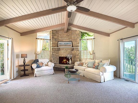 Endless 180 degree ocean views stretching from Point Lobos to Pebble Beach capture the essence of this prime Carmel Woods property. Upon entering the property gate, you will be greeted with a private, sun drenched courtyard to enjoy the quiet & peaceful scenery. With a flexible floorplan, this property offers three bedrooms and three full bathrooms. Vaulted, open beam ceilings and a carmel stone fireplace welcome you into the two bedroom, two bath main house. The downstairs has a private entrance, wood-burning fireplace and small kitchenette. The permitted converted garage offers a large room and full bath, capturing spectacular views of the Pacific. Perfect for someone looking for comfortable living with income potential, this hidden gem is located in the coveted Carmel Unified School District and is just minutes to downtown Carmel. All of this, coupled with easy highway access, makes this property one that you do not want to miss!