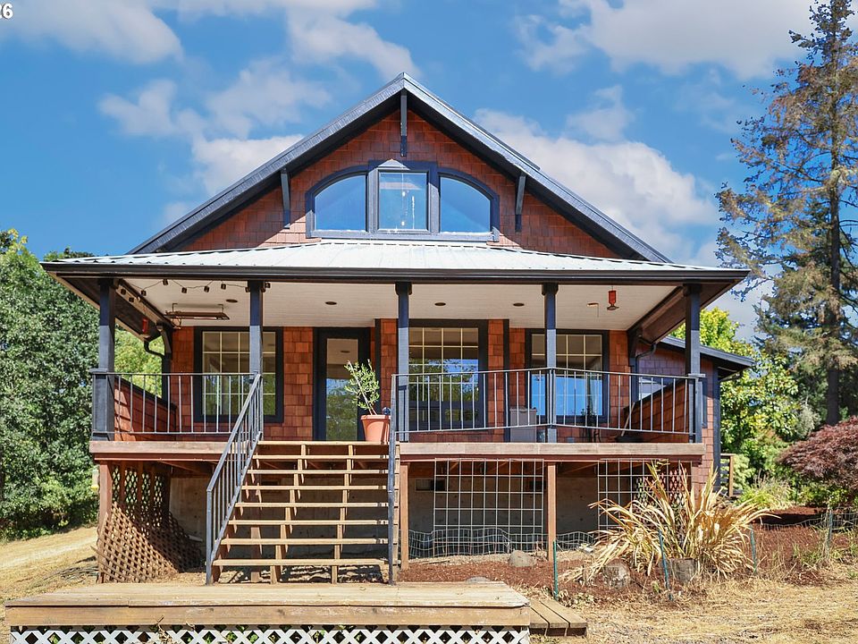 Beautiful County Living with 2 Homes on 4.15 acres! 4 Bedroom 2 Bath home...PLUS.. 2nd private ADU/Studio Style home settled on a peaceful rural property. No through traffic and beautiful views, this bright, updated, and remodeled property offers fresh interior and exterior paint, new carpet upstairs, modern lighting, open concept, and cadet heaters in each bedroom along with cozy fireplace in main living room. The home is supported by two active wells, a full water filtration system, 2 water reserve holding tanks, and is generator-ready for added convenience. Outdoors, you’ll find fully fenced and cross-fenced acreage with privacy backing to private timberland, two irrigated and fenced gardens with raised beds, an oversized chicken coop, a seasonal creek, and an orchard with apple, pear, cherry, and peach trees. Additional features include metal roofs on all buildings, two laundry rooms, RV hookups, and the upstairs is plumbed for a second kitchen if desired. A fully remodeled guest studio offers a complete kitchen, full bath, fresh paint and LVP flooring, and private parking with space for RVs or multiple vehicles, perfect for extended family, guests, or rental potential. A separate laundry/loft building with water and power adds extra flexibility for storage, projects, or hobbies. This property combines modern updates with country living and room to grow, hobby farm, animals, beautiful sunrises and sunsets. Also on the lower portion of the property a "Mini Cabin" for fun camp outs and family fun. Video available upon request for a birds eye view of this gorgeous property!