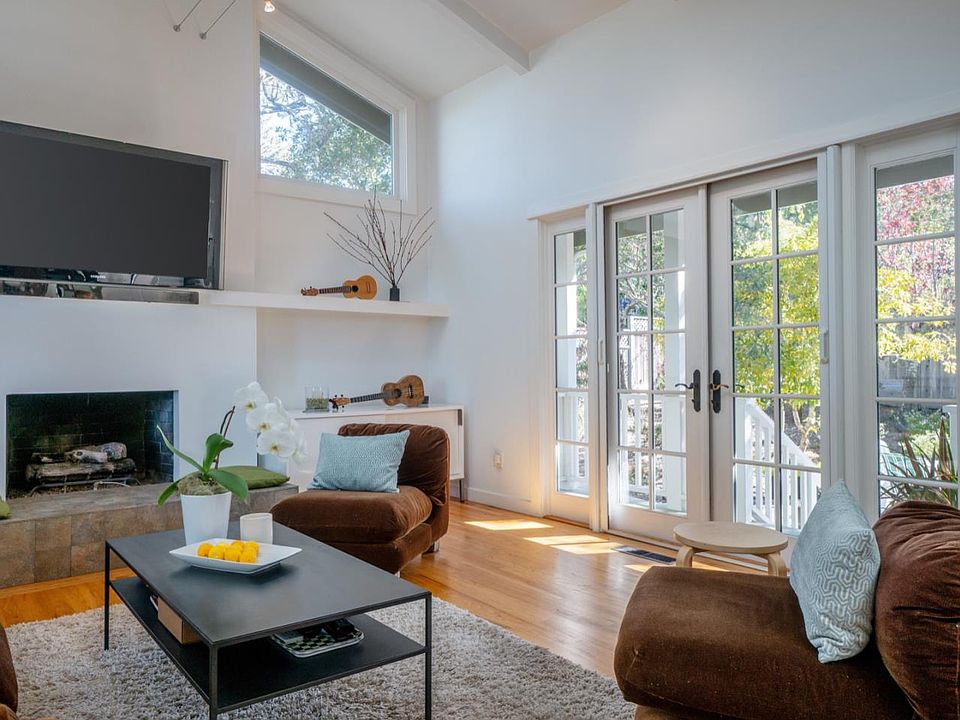 A full time residence for last 20 years, this peaceful Carmel home has been updated with a clean timeless simplicity. It's white walls and tall open ceiling have been warmed with excellent lighting, natural wood floors and built-in shelving. The location offers easy access to the Monterey Peninsula and Downtown Carmel-By-The-Sea. It began life as a raised ranch (easily modified to avoid steps) with all the living areas on one level. There are three bedrooms and three full + one half bath and an open plan kitchen, dining, living room. There is a fourth bedroom and bath with a separate entrance as well a very large (almost tandem) one car garage. The 6,400 square foot yard is fenced and landscaped with low maintenance plantings. There are decks and a patio for outdoor living. The driveway is paver stones and widened for additional parking if needed. The modern compact kitchen is extremely well designed with a Viking six-burner range, Bosch dishwasher, built-in GE Monogram refrigerator, Caesar stone counter tops, excellent lighting and surprising counter space. The baths are updated in style with polished concrete countertops, euro cabinetry and granite tile floors.