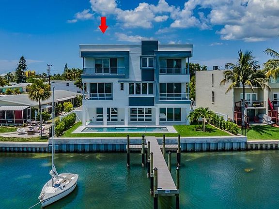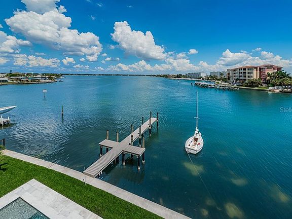 One or more photo(s) has been virtually staged. BRAND NEW LUXURY WATERFRONT CONSTRUCTION LOCATED JUST A FEW MINUTES WALK FROM THE POWERDERSOFT SANDS OF TREASURE ISLAND BEACH! You'll love this fabulous coastal modern luxury waterfront home. With an impressive 5 bedrooms, 4 ½ baths and many, many exceptional features, this is quite likely the best new construction waterfront value on the market today! Elegant porcelain and engineered hardwood floors are richly finished in a wonderful driftwood style. The grand waterfront great room opens to a terrific covered balcony overlooking a wide bay. A plush, state-of-the-art kitchen boasts gorgeous quartz surfaces, elegant Jenn-Air stainless steel appliances, extensive cabinetry, center island breakfast bar with beverage chiller and a custom illuminated wine rack - all finished with a lavish Euro-style minimalist appeal. Beautiful water views are enhanced by the splendid indoor-outdoor dining experience offered by this amazing home. 1st living level also includes a guest bedroom suite and a large media room/office with private balcony. The brilliant upper level owner's suite opens to a private covered balcony with breathtaking intracoastal waterviews that stretch more than a mile wide. Luxurious owner's bath is a pampered treasure - unique water views and masterful floor-to-ceiling tilework support a fine soaking tub, walk-in glass shower enclosure, dual vanities with quartz counters, a private water closet and a superb walk-in closet with fine closet system and center island dresser. All bedrooms are well-finished and all baths, gracefully appointed. You'll appreciate the 3-stop elevator, full service "bedroom level" laundry room and epoxy floor garage. A huge 750 sqft multi-purpose, lower level fitness/game area opens to a superb covered deck with exquisite paver tilework and a dazzling Pebbletec pool with sunshelf. Update seawall supports a newer composite dock that provides rapid access to the Gulf of Mexico. A terrific value and exceptional waterfront residence located close to fine dining, shopping and entertainment. 'The room and area dimensions are approximations. Buyer to verify.''The room and area dimensions are approximations. Buyer to verify.'
