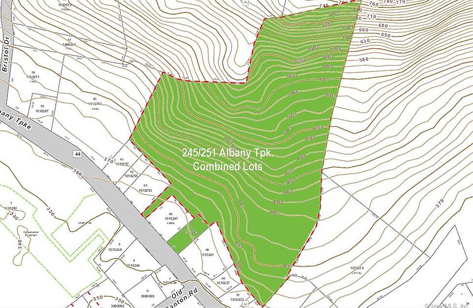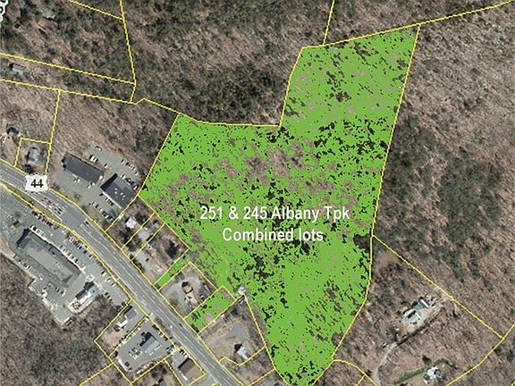 You have a rare opportunity to own 23.13 acres right on Albany Turnpike/Route 44. Two parcels are being sold together - 245 Albany Turnpike/Parcel #67 is .51 acres with 75 feet of frontage on Route 44 and 251 Albany Turnpike/Parcel 64 is 22.62 acres and is accessed by a very small piece road frontage, but most likely not wide enough (minimum requirement is 30 feet, and therefore access would be best from the land at 245 Albany Turnpike. 245 Albany Turnpike is zoned CVDVD (Canton Village Design Village District, with the benefit that it is one of the few residential properties on Route 44, in this area, and the current structure cannot be replaced, outright, but it can be rebuilt using the same floor print. Otherwise, the structure could be taken down and the parcel used as an access to 245 Albany Turnpike which is zoned as R3 (vacant land but is included in the CVDVD (refer to "Permitted Use in the Design Village District Business" available at Canton Townhall. Sample for use: Multifamily dwellings, assisted living or skilled nursing facilities - something along those lines. . Water and sewer lines are accessible in the street for these lots, which is a bonus, as very few lots in this area have access to the water main." The possibilities are there for you to explore your options. The small home being sold in an "AS IS" condition at 245 Albany Turnpike, Canton.