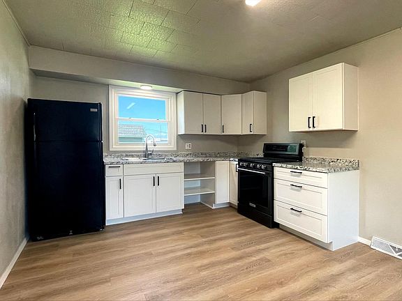 2+ bedroom, 2 bathroom home with vinyl siding, double paned windows, main floor bedroom, main floor bathroom with tiled shower, main floor laundry, main floor office, upstairs bedroom and bathroom, new kitchen cabinets, new kitchen countertops, new flooring on the main floor, single garage with steel overhead door, and patio overlooking the back yard.