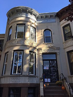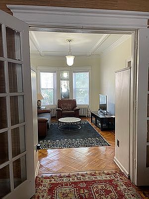 AVAILABLE 8/15 or 9/1; SHOWINGS BEGIN 7/27 Charming 4 bedroom single-family home in a classic Bay Ridge limestone townhouse. High ceilings, crown moldings, and original parquet hardwood floors with inlay borders throughout. French doors and grasscloth walls in living room. Eat-in kitchen with pantry extension leads out to a spacious deck. Fire up the grill or just kick back and relax overlooking beautiful trees and your private fenced yard. 4 bedrooms upstairs with loads of closet space, plus the two larger bedrooms each include sinks and built-in vanities. Southern exposure and four skylights keep this home bright inside. Downstairs, enjoy the luxury of your own sauna. The full-height basement also contains an office nook, workshop area, half bath, washer & dryer, and lots of additional storage space. Super walkable neighborhood - enjoy the waterfront, groceries/shops/dining on 3rd Ave, and both Owls Head and Shore Road Parks. One block to the library, two blocks to highly-regarded PS102. Close to R train, X27/X37 express buses, and NYC ferry. Credit score 700 or over required.