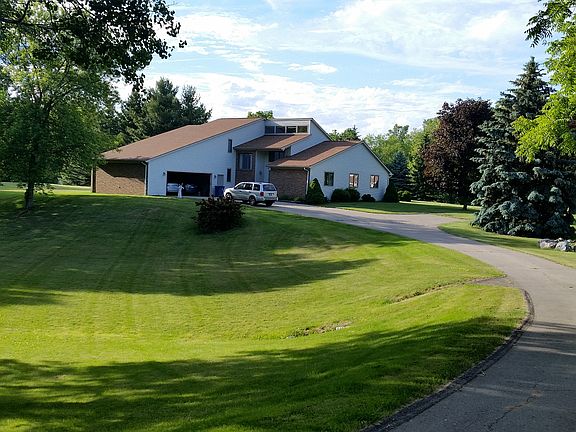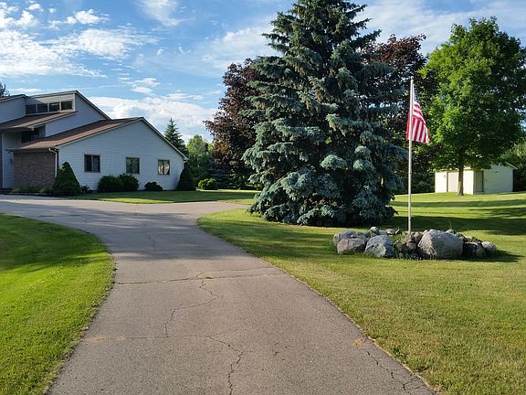 Don't miss out on this amazing home on 5.64 acres in the award winning Byron Center school district. Inside this beautiful contemporary home you will find large wonderful windows that let the outdoors in with ample sunlight. Brand new kitchen with granite counters tops, new cupboards and stainless steel appliances, a large pantry & main floor laundry. Large dining room of all windows. Cathedral ceilings in great room with fireplace and den off great room. All three rooms have sliders that open to a spacious deck and patio with fire pit and hot tub (included:). 2 bedrooms and full bath complete the main floor. Up you will find a comfortable loft over looking the great room and a master suite with its own full bath with double sinks and a huge walk in closet. The lower level is
