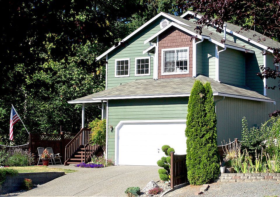 Exposed aggregate cement surrounding the home, with added storage in garage. Roof and natural gas furnace replaced 2019 and 2020.