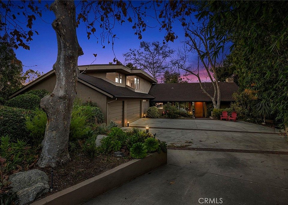 House: defined as a structure intended for human habitation. For most, a home’s functionality is a top priority, but what if a home could be both functional and experiential. Curated, designed and custom built by the current owner in 1983, 245 Altura Drive is far more than just a house; it is a bespoke, understated, thoughtfully created architectural masterpiece. Combining elements of mid-century modern and post-modern design, the residence is perfectly sited on this almost ½ acre, fully gated flag lot. Greeted at the street by an electronic gate that sets the stage for a striking residence framed by a natural landscape and mature trees. One has the feeling of being away in the mountains while still being in the city. The brick lined foyer leads to stunning living spaces with vaulted ceilings, clerestory windows providing indirect natural lighting, and a wall of sliding doors – five in total that lead to the backyard deck. A striking fireplace and a stunning frameless glass-on-glass corner window are further highlights of the living spaces. Adjacent to the living room is a study/game room with walls of custom cabinetry and clerestory windows. Seamlessly flowing from the living room is the dining area and relaxation sitting area adjacent the kitchen. A dining nook with sliding door to front patio enjoys great southern light exposure and leads into the minimalist kitchen with solid wood cabinetry and recessed lighting along with a butcher block center island. The bedroom wing of the home is laid out on two levels and includes a highly unique two-level primary suite featuring a retreat sitting area below, also ideal as a home office, and a primary bedroom upstairs that feels like a tree house with a wall of windows overlooking the tree tops. The en-suite bathroom features custom ‘floating’ dual sink vanity and walls of closet space and a skylight for natural lighting. Four generously sized secondary bedrooms and two additional bathrooms complete the interior. Direct access to the 3-car garage is conveniently found in the hallway. Stepping outside, an expansive deck provides an ideal space for outdoor entertaining overlooking the city and hill views to the north. Meandering paths wind throughout the property and native plantings and mature trees truly provide a reprieve from the city around you – escape it all and call 245 Altura Drive home.