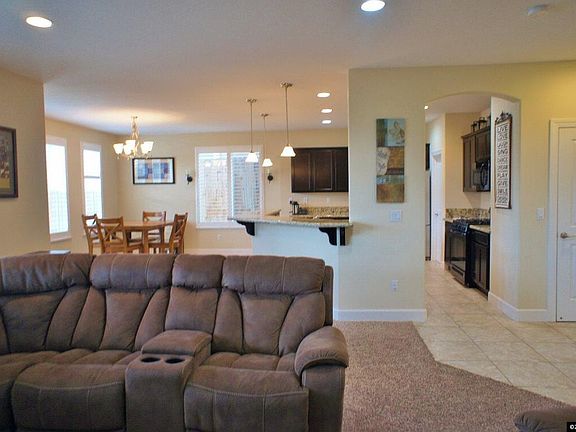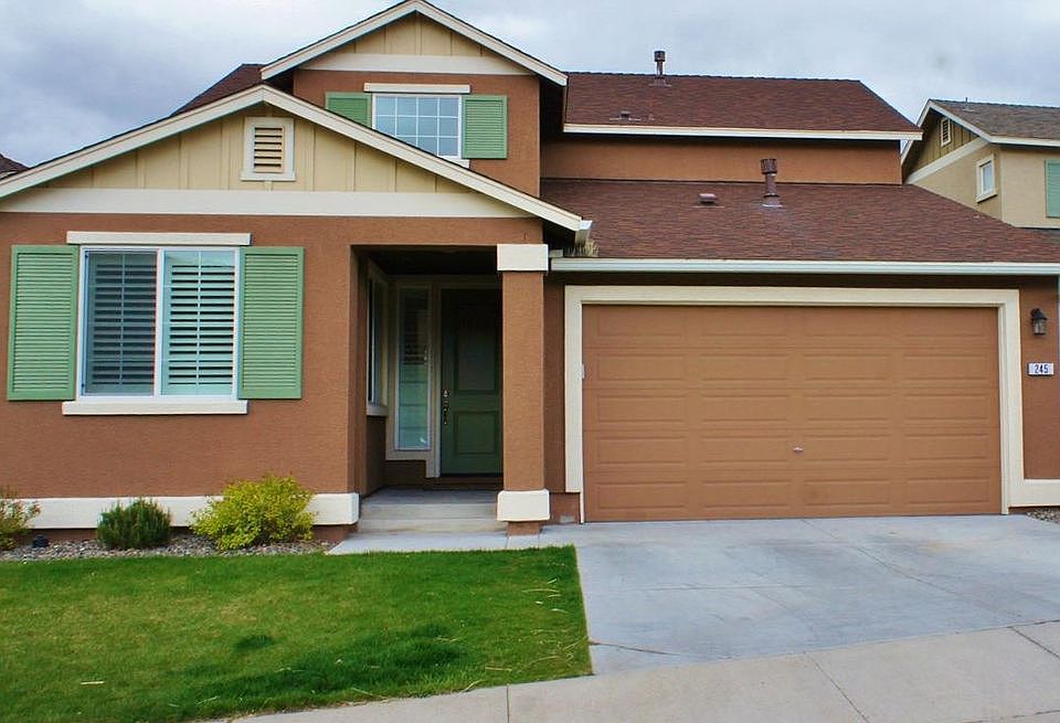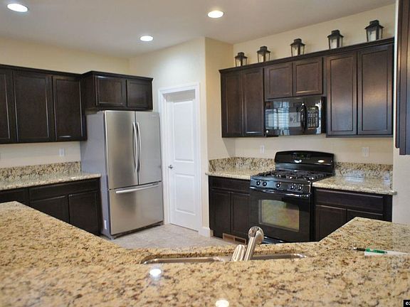 4 year new view property in N.W. Reno. 1 Bedroom and full bath on 1st floor. Tile entry, kitchen & dining flooring. Great room design. Large, open kitchen with gas range and oven, built-in microwave, slab granite counter tops, expresso stained cabinets, breakfast bar, pantry and tons of counter space that opens to dining and living area w/slider access to back yard. Master features a private deck w/slider access, raised vanity w/dual sinks, garden tub and sep.shower. Parklike back yard w/paver patio.
