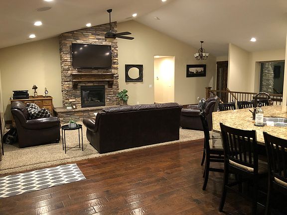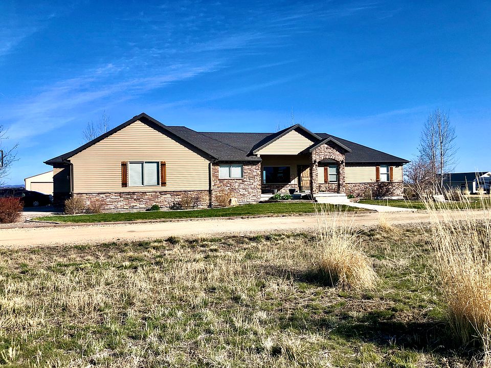 This is a custom built home great for entertaining. Including 5 bedrooms and 3 ½ baths, this home also includes a large storage area and exercise room. The spacious kitchen features a large island, double ovens, and a walk-in pantry with an access door to the garage, making it quick and easy to unload groceries. Connecting to the kitchen, the spacious living room contains a gorgeous rock fireplace, matching the fireplace found in the basement. Mounted home theater speakers can be found both inside and outside. Built into both the walls and the ceilings, these speakers make for a realistic sound experience. Large glass windows in the living room show off the beautiful Ruby Mountains. Adjacent to the kitchen, the mudroom includes lockers and a spacious laundry room, complete with cabinets and counter space. An additional laundry room can be found in the basement. The house also features a convenient central vacuum system, making cleaning efficient and simple. On the main level, beautiful stain grade trim and solid wood doors compliment the custom cabinetry that can be found throughout the home. The master bedroom includes luxurious heated tile and a steam shower. In addition to the home, the property includes a sprawling 40x48 foot shop with a heated ½ bath and laundry room. Surrounding the home, mature landscaping includes both sprinkler and drip systems, along with large horse pens and a riding arena.