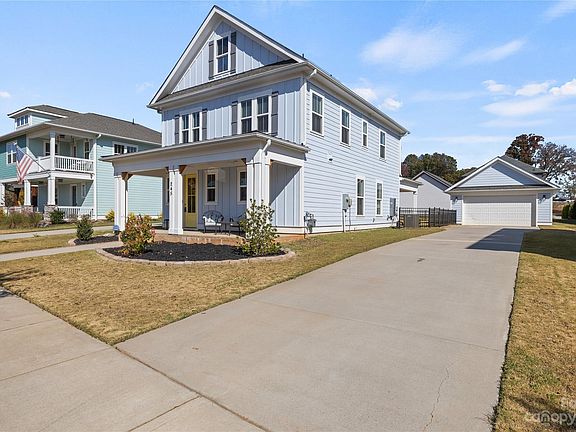 Welcome to your dream home in the coveted Riverwalk neighborhood! This stunning and gently lived-in Charleston-style two-story home was built in 2021, boasts 3 bedrooms with 2.5 bathrooms, and a detached 2-car garage with a long private driveway. Enjoy the elegance of a modern open-concept living space and a chef's kitchen with stainless appliances, a 5-burner gas range with a sleek stainless hood, upgraded quartz countertops, and a stunning tile backsplash. The split-bedroom design features large walk-in closets, a tankless water heater, and is overflowing with natural light. Enjoy mornings with a coffee on your front porch or a cool evening in your fully fenced yard, complete with a covered patio and custom-designed fire pit. As if this wasn't enough, the Riverwalk district is expanding rapidly as one of the hottest communities in Rock Hill and offers tons of amenities plus easy access to great local restaurants, shopping, and I-77 for seamless commuting or travel. Come visit today!