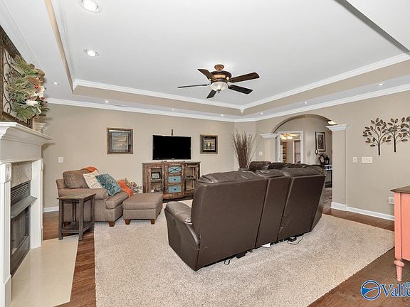- Features: Ceiling Fan(s), Crown Molding, Fireplace, Smooth Ceiling, Tray Ceiling(s), Wood Floor