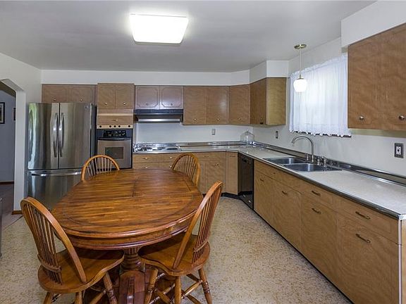 Great curb appeal & retro look in this impeccably maintained bigger-than-it-looks 3 bedroom (basement has 4th bedroom) 1.5 bath home. Great flow from the huge 23x13 living room (hardwood beneath carpets) to 14x11 dining room to 13x13 eat in kitchen. Kitchen has lots of cabinets & a mile of stainless trimmed counter space that has been meticulously maintained ~ newer cooktop & convenient wall oven too! Back patio access from the kitchen makes for great entertaining. 3 generous sized bedrooms have original hardwood floors. Bathroom has walk-in shower & features unique original fixtures & finishes. Large fenced backyard w/patio, lush lawn & small storage shed. Tandem garage is a whopping 43 deep & 13 wide & easily holds 2 vehicle & trailer/riding mower/etc. 50 driveway & side pad can hold all your friends & familys vehicles. Basement has a mini-kitchen in the 19x11 family room & a fourth bedroom (14x13) w/closets. Even a 27x8 laundry/storage area~ washer & dryer included of course!