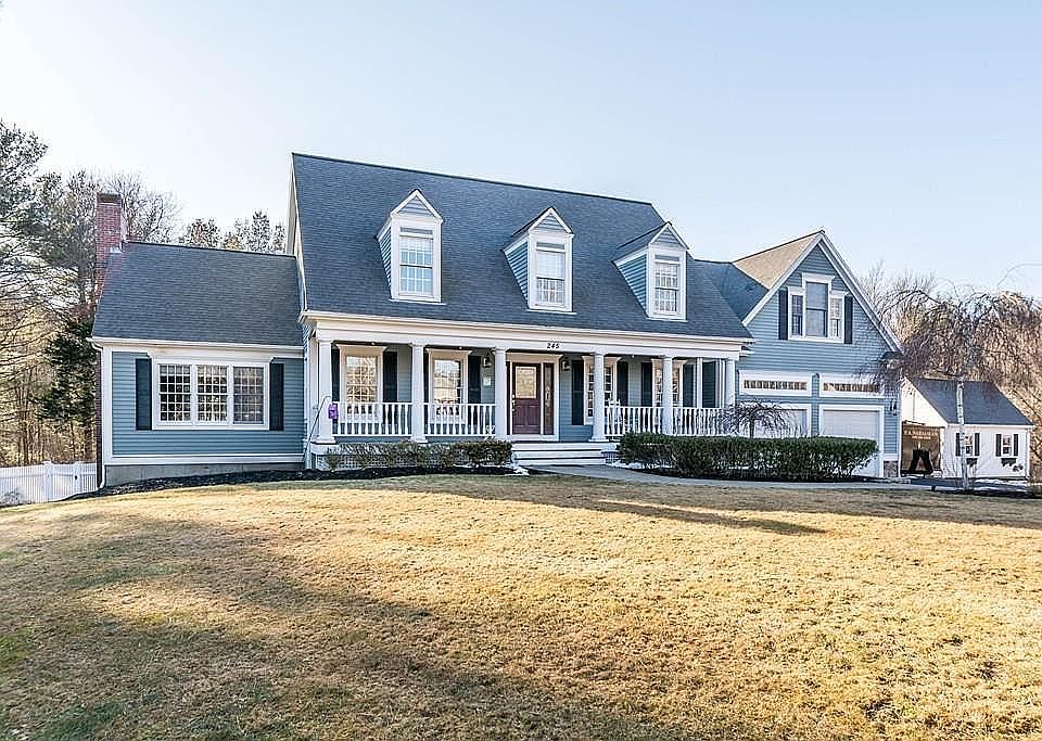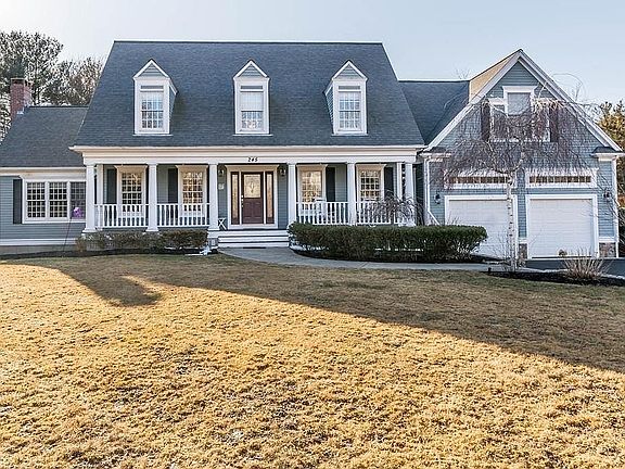 **Open House on Saturday 3/16 @ 2-3:30pm and Sunday, 3/17 @ 1:30-3pm** Stunning Nantucket cape set back on a beautiful acre lot. This meticulously maintained 4 bdrm/3.5 bath home offers spacious living. Oversized porch welcomes your guests & offers space for outdoor living with hot tub. A spacious foyer leads you to a formal living room & formal dining room in the front of the house, and an open eat-in-kitchen and family room with a fireplace. Large 4 bedrooms with cathedral ceiling master suite with jacuzzi tub with his and hers areas. This home has ample storage and closets throughout including 2 car garage. There is a full unfinished basement with large bar and endless possibilities for additional living space and/or storage. Lots of privacy in backyard with 14 acres of conservation land. MUST SEE!!!