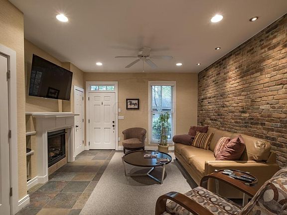 Totally renovated townhouse, in a private compound just steps from Frank Fetch Park, Lindey's and more...Interior features include slate flooring on first floor and hardwood on second floor, gas log fireplace, breakfast bar, nice sized kitchen with an abundance of storage. A solid brick wall really adds charm and warmth to this unit.. On the second floor a spa-like bath adjoins the two bedrooms. Full wall of glass, 2 person shower, a second floor laundry, custom built-ins complete the scond floor. European courtyard style shared patio with dining table, shared grill and fireplace. Guaranteed off-street parking is right at front door for the ultimate convenience. Rare find...