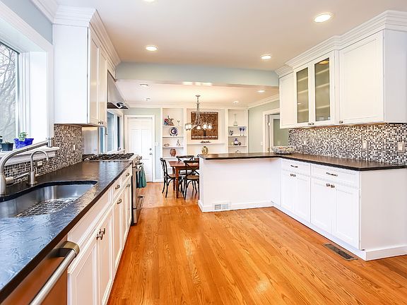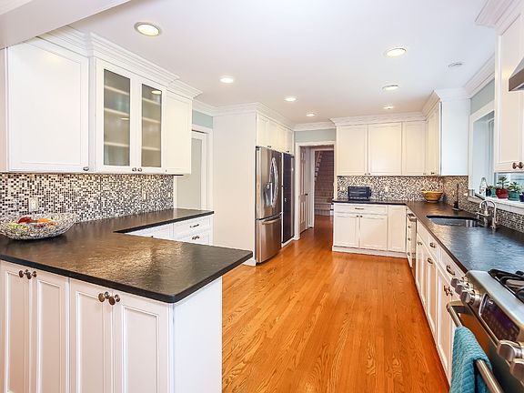 Renovated and expanded sprawling Colonial Cape, that lives like a 5 bedroom, with flexible floor plan, great light and located close to town on a flat acre of perfect property. The spacious no step main level features a beautiful kitchen with granite countertops, stainless appliances and separate eating area, a living room with oversized picture window and fireplace, dining room with glass door to deck, and recently added office with bathroom and private exterior entrance. Down the hall is the master bedroom with gorgeous bathroom with soaking tub and glass enclosed shower, walk-in closet and two additional closets, plus two additional bedrooms and a renovated full bathroom. On the upper level there is a large den, a study, a great bathroom plus 638 SF of storage that has endless possibilities. The lower level has plenty of storage, utility room and playroom. Set on beautiful park like property with oversized new deck and landscaping. All new systems. Truly move in condition.