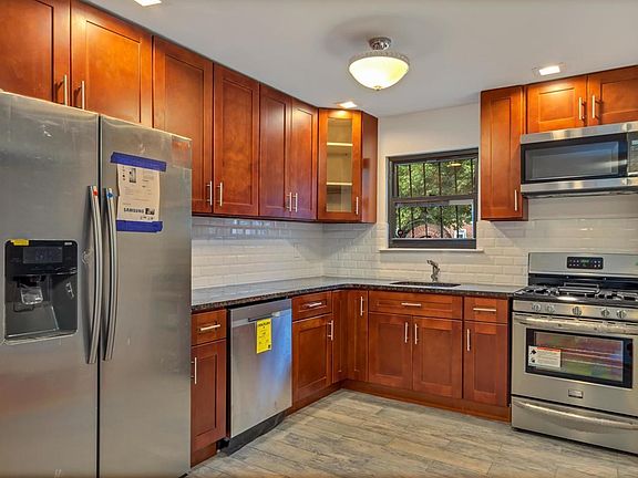 This single family brick house built in 1990 features many upgrades. The house comes on a double side lot, has a large backyard and the convenience of 3 parking space in the front. With 3 bedrooms and a finished English basement, the house is spacious. The first floor has an open layout with the living room dining room and a powder room. The kitchen is modern and well-equipped. Access to the backyard is from the first floor. This configuration naturally extends the indoor living area outdoors to the backyard. The basement floor has a storage area, a full bathroom and a laundry room. The house will be delivered with a new washer and dryer. The second floor has three bedrooms and a full bathroom. The upgrades in the house are impressive: Hardwood floors, Chef's kitchen with custom cabinets and marble counter top. With over 1700 square feet of living space this single home is offered fully renovated and ready to move in.