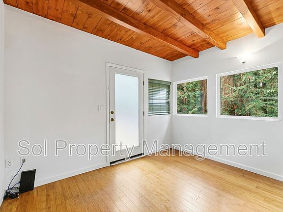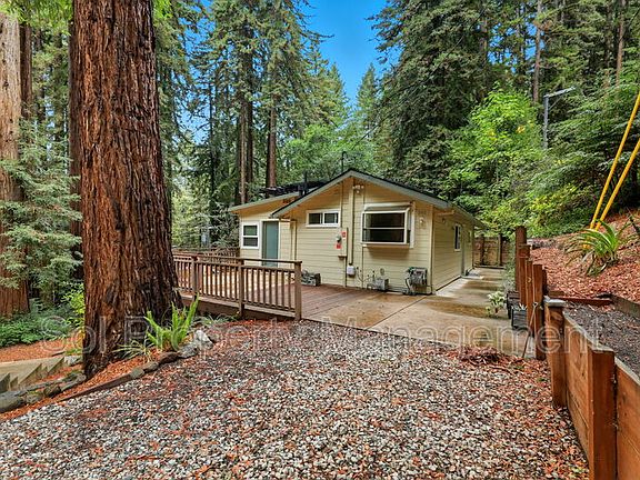Nestled in the beautiful Santa Cruz Mountains, this charming cabin-style home offers a peaceful retreat just blocks from downtown Boulder Creek. With 2 bedrooms, 2 bathrooms, and approximately 1,070 square feet of living space, the home blends rustic character with modern updates. The main living area features gleaming bamboo floors, exposed wood-beam ceilings, a cozy wood-burning stove, and abundant natural light from numerous windows and skylights. The galley kitchen is well-appointed with maple-toned cabinets, granite countertops, and stainless steel appliances. Each level includes its own bedroom with new carpet and updated bathrooms, offering privacy and comfort for residents or guests. Outside, multiple decks with serene forest views provide great space for entertaining or relaxing under the stars. There's also a unique enclosed catio for feline friends to safely enjoy the outdoors, plus a laundry room and separate storage area. The home is also equipped with solar with a back-up battery system, central heat and air-conditioning system, and whole house water filtration system. Ample parking accommodates several vehicles and even a recreational vehicle. Conveniently located near Highway 9, this home provides easy access to Felton, Los Gatos, and Saratogamaking it the perfect mountain escape with town and city connections. 1 year lease, tenant pays all utilities. Well behaved pets considered on a case by case basis with completed PetScreening profile and additional deposit required.