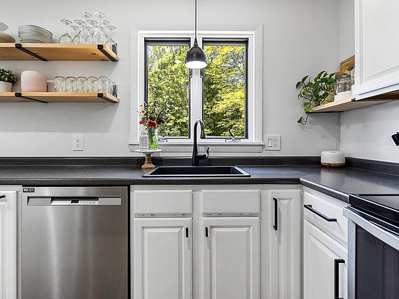 This is SINGLE LEVEL LIVING at its finest! This beautiful, sun-drenched Ranch offers a fantastic floor plan with plenty of gathering spaces for friends and family. Set back on a 2.75 acre lot abutting the woods, this home offers ample space for gardens, pets and outdoor activities. An updated kitchen with a spacious island, open shelving and oodles of cabinet space is well suited for entertaining. The adjoining dining room overlooks both the kitchen and family room with views of the front and rear outdoor spaces. Gather in the family room which has a lovely fireplace with pellet stove insert and beautiful hardwood floors which extend into the bedrooms. The primary bedroom suite has detailed trim work and en suite bathroom. Two additional bedrooms and a full bath complete the first floor. The lower level recreation room with gas fireplace is ideal for active families needing flexible space which also includes a 4th bedroom or home office. The outdoors provides extensive opportunities for adventures in the yard or through the trails in the woods. The deck overlooks the private backyard and has space for a small above-ground pool. Any gardener will appreciate the raised vegetable or flower garden beds that get plenty of sunshine. All of this, plus easy access to quaint downtown shops and restaurants and just minutes to the highway! Open House Saturday, May 6th and Sunday, May 7th from 10am-12pm.
