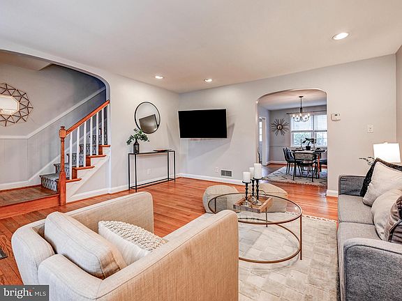 Beautiful Rodgers Forge townhome. This home has a warm and welcoming feel with hardwood floors throughout the main and upper levels and recessed lighting on the main and lower levels. The kitchen has maple cabinets with stainless appliances and opens to a lovely, flat and well manicured  fenced yard with pavers and grass. The yard could easily accommodate parking if desired. Upstairs, the hall bath was fully renovated in approximately 2019 and is in new condition, and the smallest of the three bedrooms has a nice, but fully removable if desired, closet system installed. The lower level has been finished with pergo style wood laminate, has a basic half bath and laundry, with plenty of room to add a a shower if desired, and has a walk out to the rear yard. This is a lovely location on a wider Rodgers Forge road, just north of Stevenson Road and very accessible to the schools and York Road retail corridor.