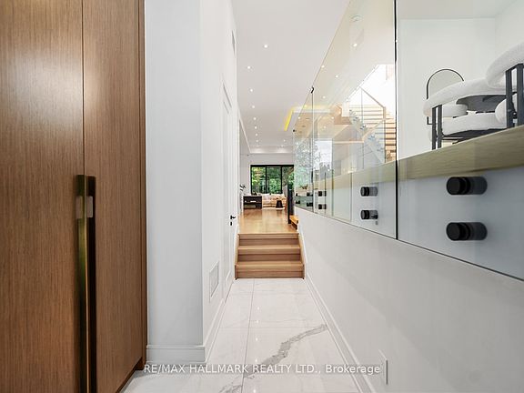Welcome to 245 Brookdale Avenue in Lawrence Park North a stunning custom-built residence offering the perfect blend of luxury, design, and family living.This prime Toronto location sits directly across from John Wanless Junior Public School and within walking distance to Lawrence Park Collegiate, Yonge Street & Avenue Road shops, TTC subway, and easy access to Highway 401. Inside this stunning home. you will discover 4+1 bedrooms and 5 bathrooms, soaring 11.5 ft ceilings on the main floor, 9.5 ft on the second, and 11 ft in the basement. The open-concept main floor features oversized black aluminum windows(Made in Canada), 4 inch wide-plank white oak hardwood floors, solid core doors, and a herringbone hardwood inlay in the dining room beneath a custom Tom Dixon inspired chandelier. The chefs kitchen is the heart of the home with a 9.5 ft waterfall island in Caesar stone, Wolf/Sub-Zero appliances, walnut cabinetry, a marble bar with built-in beverage fridge, seating for four, and a custom wall pantry. The adjoining family room is anchored by a marble gas fireplace and features motorized blinds and built-in speakers (Throughout the home), seamlessly integrated with a Control 4 home automation system. Upstairs, a massive skylight floods the space with natural light. The luxurious primary retreat offers a spacious walk-in closet with custom organizers and a spa-like ensuite with dual sinks, water closet, and a marble shower with bench. Secondary bedrooms feature built-in closets and a shared 4-piece bath. 4 bed has 3pc En-suite with large picturesque window. The lower level includes a fifth bedroom, large recreation room with walkout, mudroom area, hot water radiant heated floors, and a second laundry. Additional highlights include: six security cameras, intercom & video doorbell, central vacuum, Sonos sound, Speakers throughout, two laundry rooms. This is Lawrence Park North living at its best! Steps to top rated schools, parks, shopping, and transit.