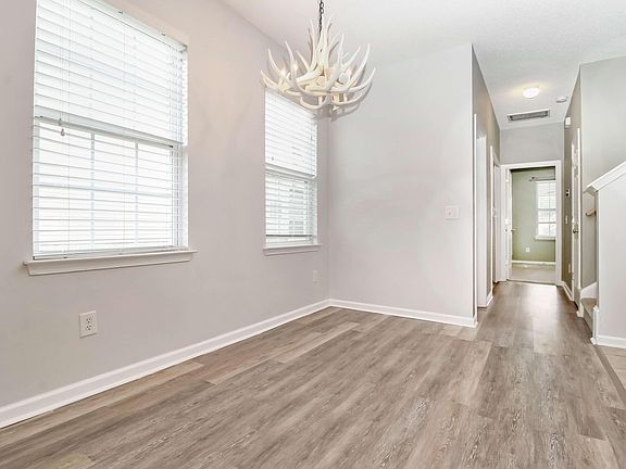 Beautiful 3-bed, 2.5-bath end-unit townhome in Goose Creek! This well-kept and updated home will impress you from the moment you arrive. As you enter through the you'll appreciate the updated flooring and high ceilings, as well as the classy lighting! As you enter from the great room, you will move through the adjoining open kitchen, which features black and stainless appliances, easy-to-clean tile floors and lovely cabinets with tons of storage space! The first floor also features a master bedroom with porch access, walk-in closet and a great ensuite! Bedrooms in this home all feature ceiling fans and great closets, and the upper floor even features a versatile loft space, perfect for a playroom or office!