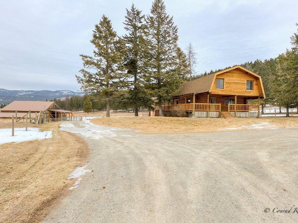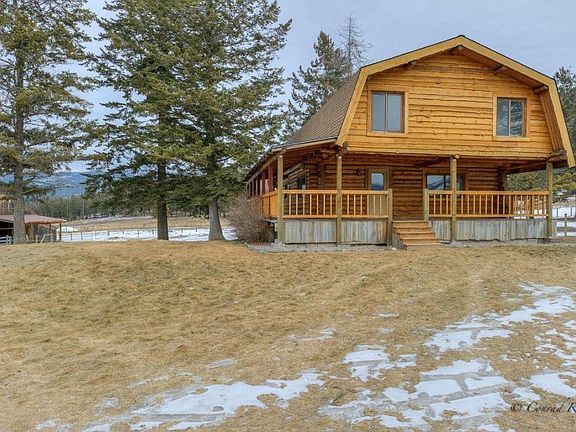 Country living at it's best! Here is your true Montana log home with open beam ceilings and log railing throughout the house. This 3,000 Sq Ft home boasts 3 bedrooms and 3 baths, all on 5.28 acres. Has a fabulous brick fireplace in the living room with open beams which gives it a ''lodge'' feel. Multiple fenced pastures, barn with tack room, shed, round pen and an arena. State land nearby.
