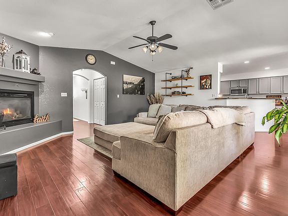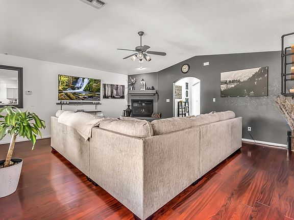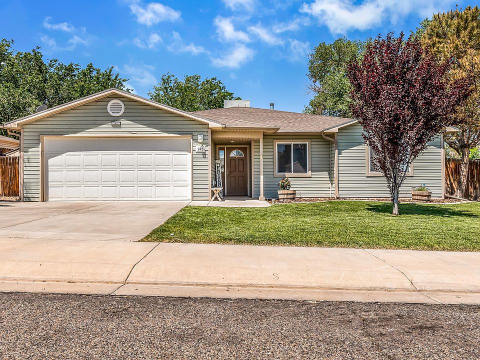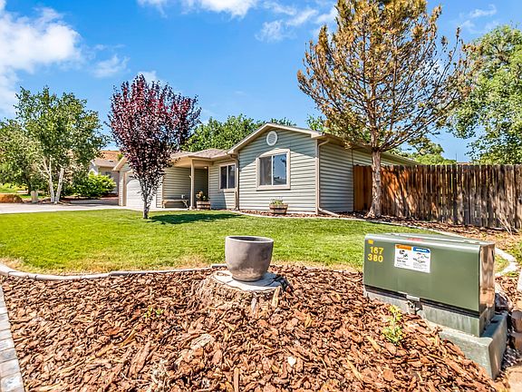 Situated on a quiet dead-end street, this Orchard Mesa rancher has backyard views and convenient access to nearby hiking trails. Well-maintained, this spacious 4-bedroom home has a generously-sized living room with vaulted ceilings and a gas log fireplace making for a comfortable gathering and relaxing space. With a complementary gray color palette throughout, hardwood and laminate hardwood flooring bring in an element of convenience and low-maintenance. From the extended backyard patio, youll appreciate shade trees, lush lawn with sprinkler system, a fully-fenced yard, storage shed, and RV parking.
