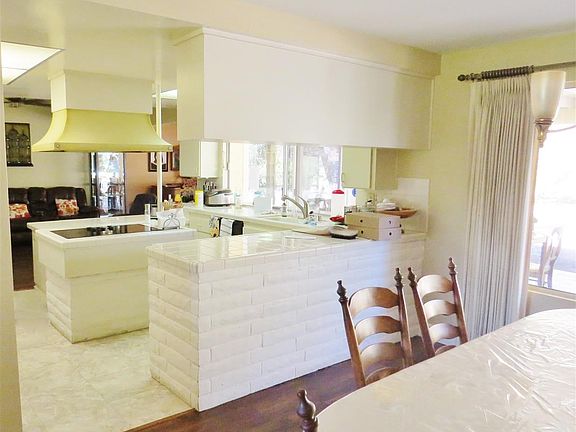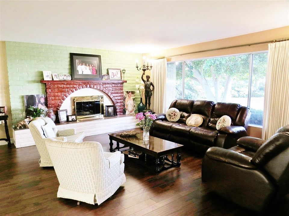 Lovely single story Spanish home sits perched in a great area of Bonita with partial ocean views and many great things to offer! Beautifully well appointed hardwood floors throughout wooden beams add to that classic rustic feel fantastic brick wall and fireplace large covered patio and kitchen which allows for perfect entertaining open living space in all rooms and bedrooms with one optional bedroom/office with built-in shelving. Mature trees through front and back give for great privacy and plenty